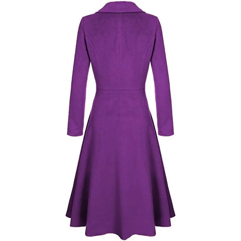 Retro Overcoat Slim Lapel Pleated Hem Button Long Trench Coat