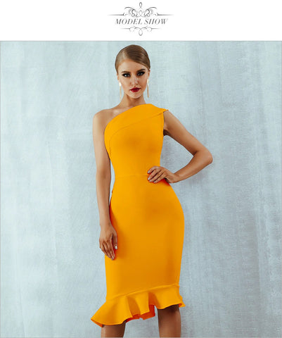 Sexy One Shoulder Sleeveless Ruffles Nightclub Celebrity Party Mermaid Dress