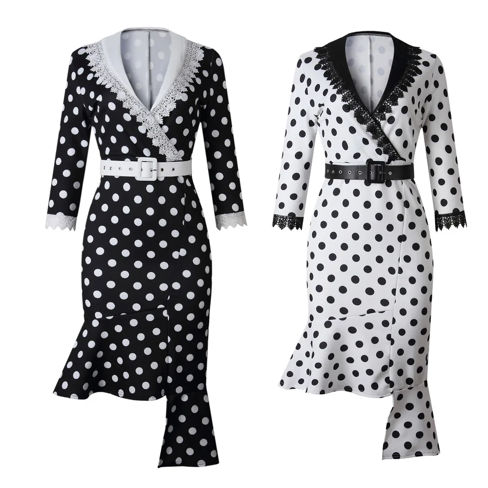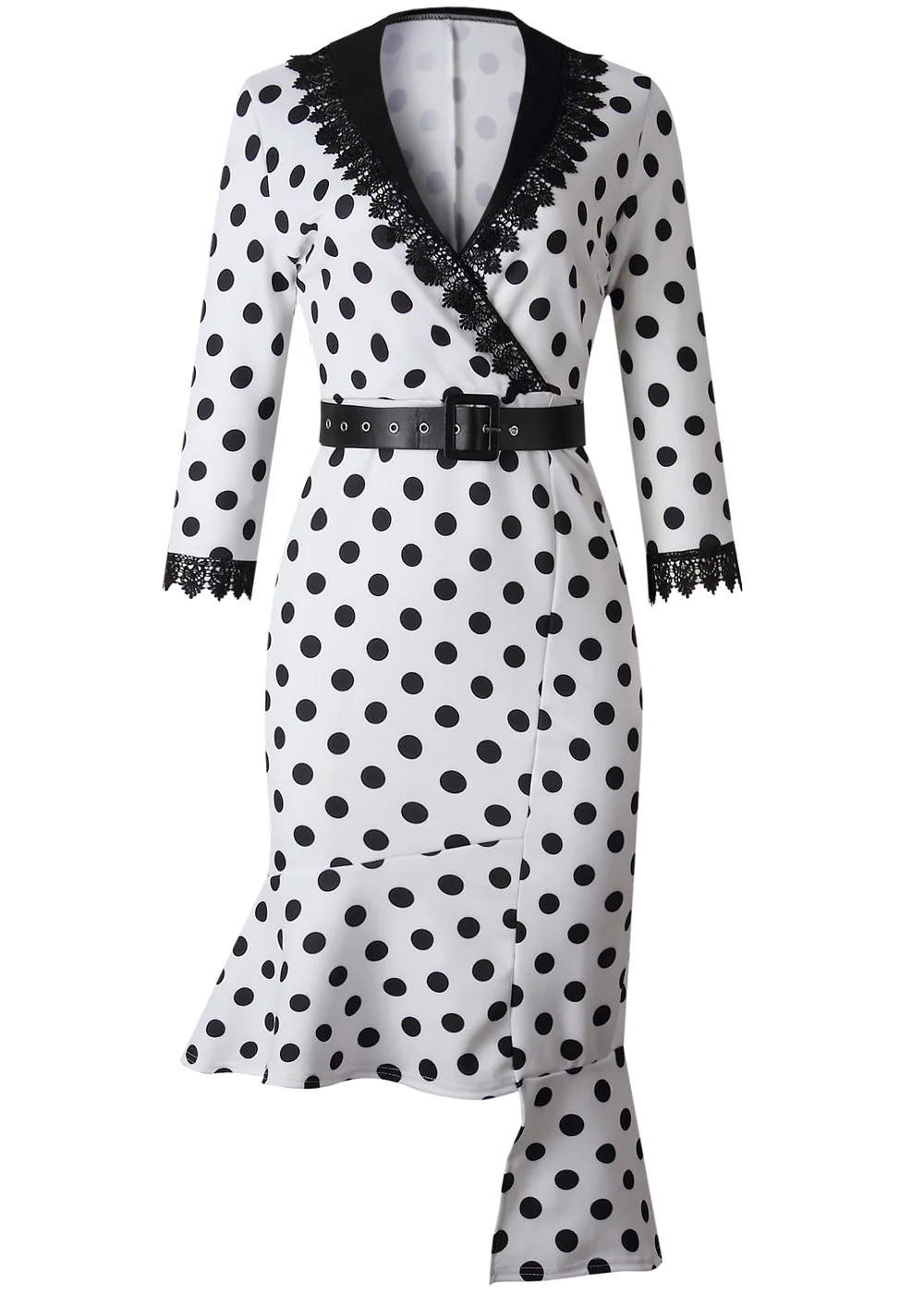 Style Feature?a?aThree-Quarter Sleeve, ?V-neck, Dot Print, Sashes, Casual Vintage Style.